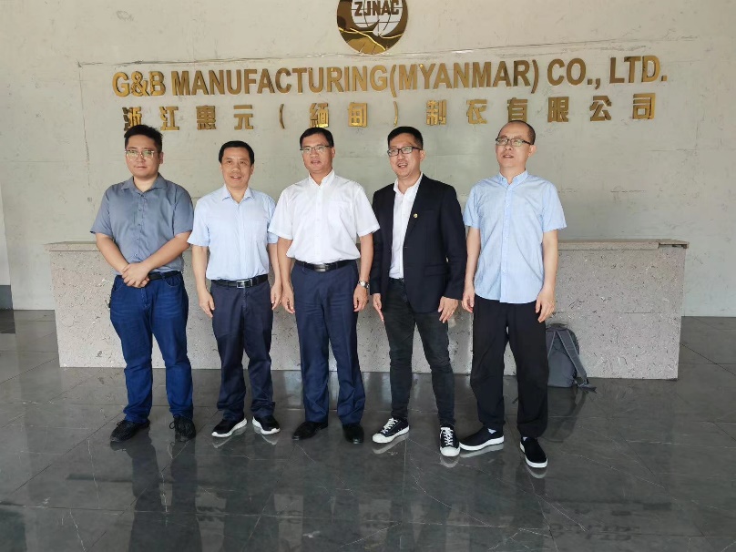 12月9日,中國紡織品進出口商會會長曹甲昌到公司惠元(緬甸)制衣工廠走訪調(diào)研,省商務(wù)廳外貿(mào)發(fā)展處副處長王舒立,緬甸工廠負責人等陪同調(diào)研?! ?/div>