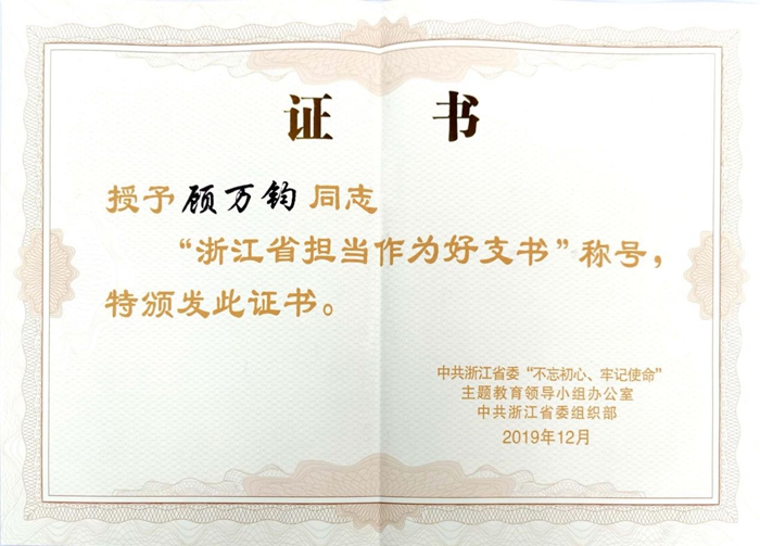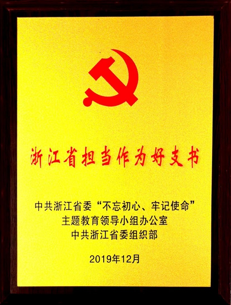 大會表彰了300位全省各領(lǐng)域基層黨組織帶頭人中涌現(xiàn)出來的先進(jìn)典型,浙江土畜集團惠隆第二黨支部書記顧萬鈞同志被授予“浙江省擔(dān)當(dāng)作為好支書”的榮譽稱號。
