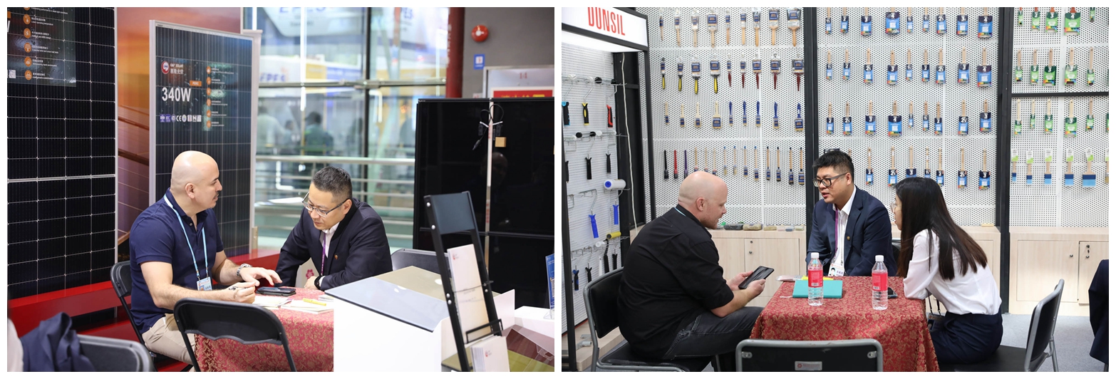 10月15日至20日第一期廣交會,在公司五金工具、汽配、新能源等9個攤位上,漆刷團隊帶來了全新設(shè)計的人體工程學(xué)手柄油漆刷,汽配團隊展出輕巧、耐用的新一代車頂架和自行車架產(chǎn)品,新能源團隊陳列的光伏組件效率高達23.5%,吸引了眾多海外客商來公司展位洽談、了解產(chǎn)品。